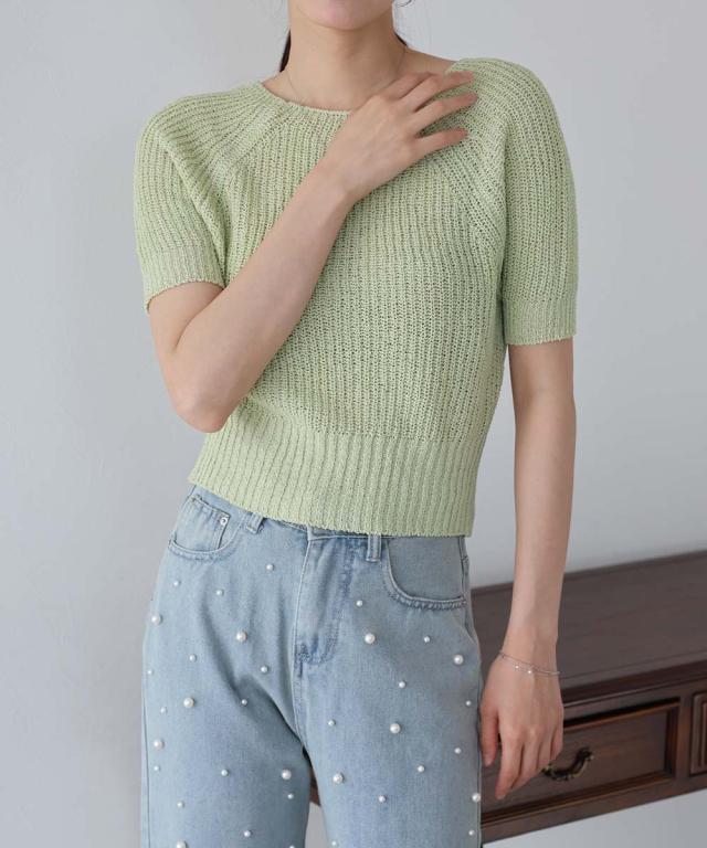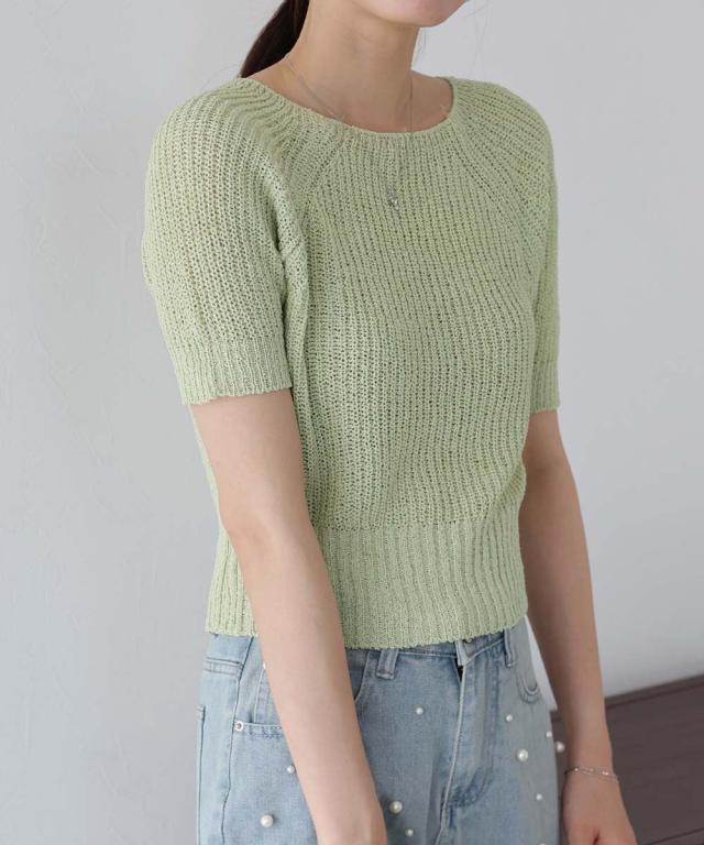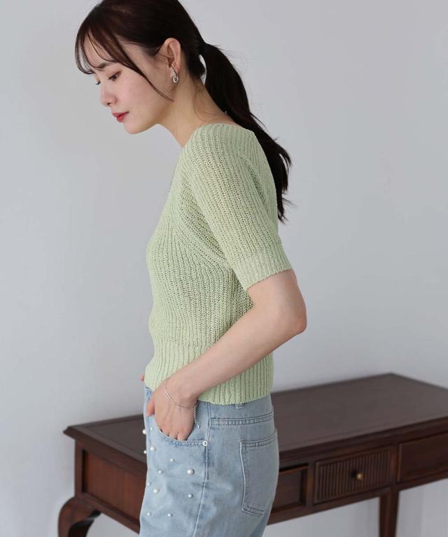 メッシュ編みの透け感が軽やかで夏らしいサマーニット。