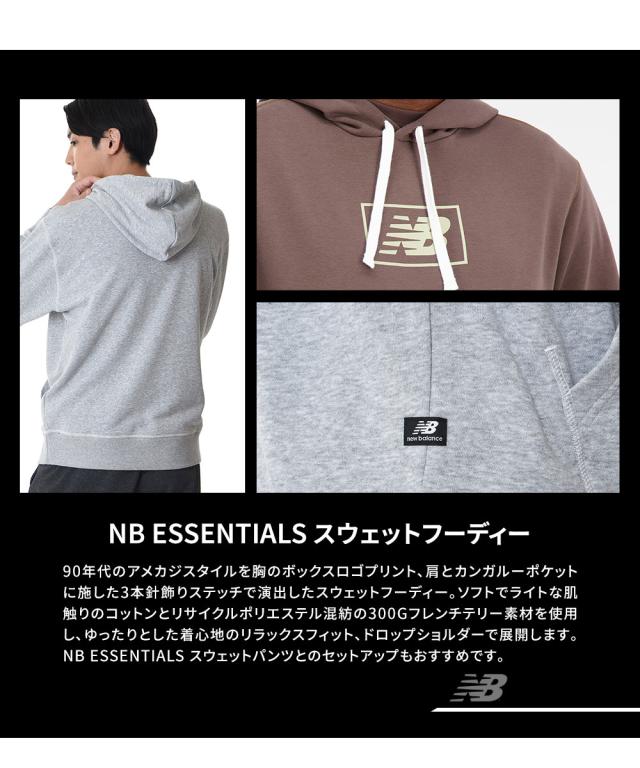 ニューバランス スウェット メンズ トップス パーカー フーディー トレーナー フード スポーツ キャンプ アウトドア ロゴ 黒 ブラック グレー グリーン ブラウン New Balance NB Essentials スウェットフーディー MT33508