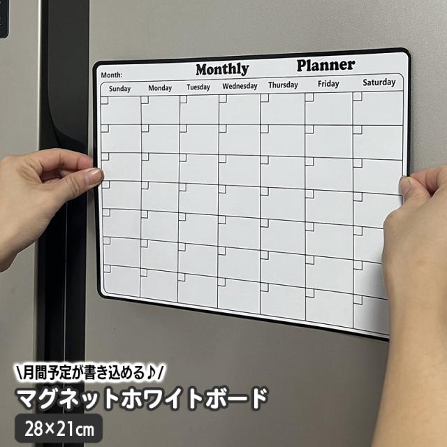 ホワイトボード メモボード カレンダー表示 月間予定 マンスリー スケジュール 曜日 英字 マグネット 磁石 家族予定 書き込み