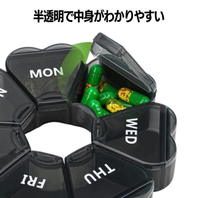 ・1週間分の小分け収納: 各日ごとに分けられた収納スペースで、毎日のサプリメントやお薬を整理整頓。服用する曜日が一目でわかります。