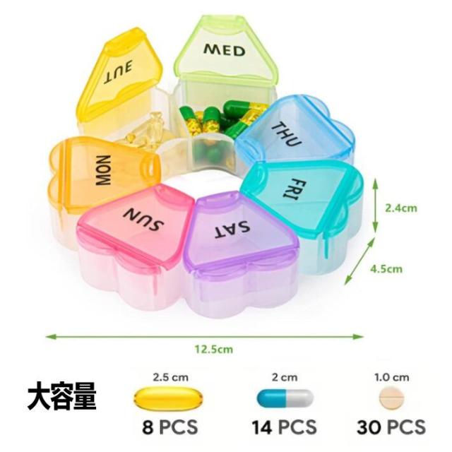 ・1週間分の小分け収納: 各日ごとに分けられた収納スペースで、毎日のサプリメントやお薬を整理整頓。服用する曜日が一目でわかります