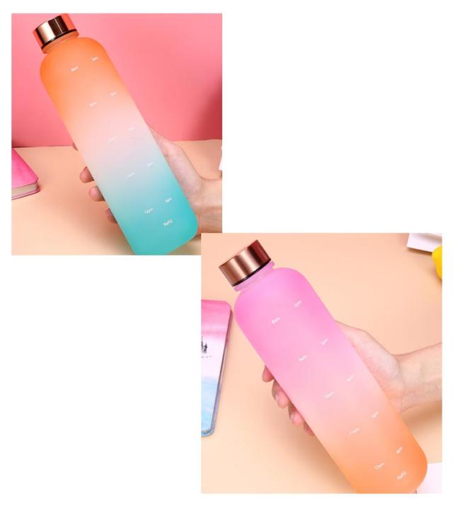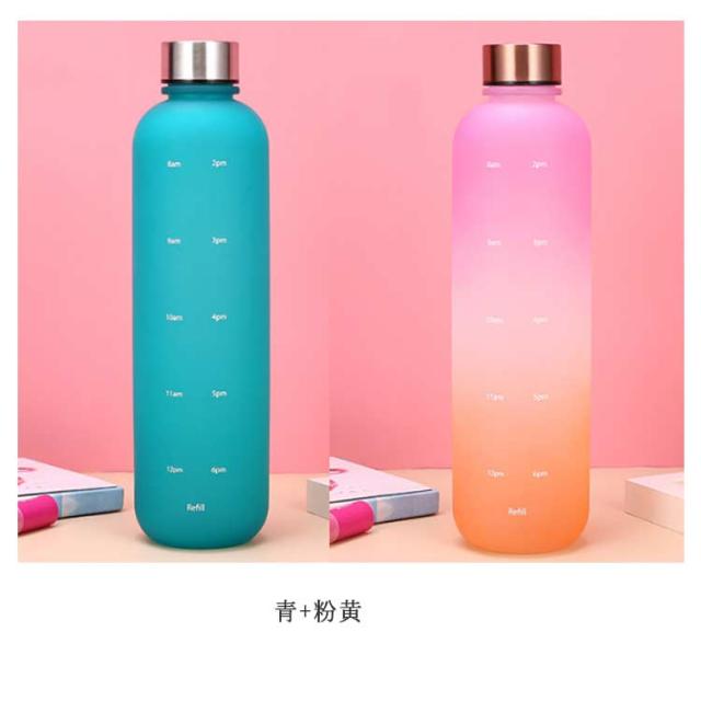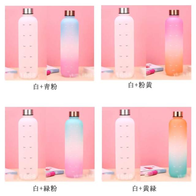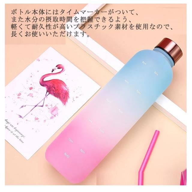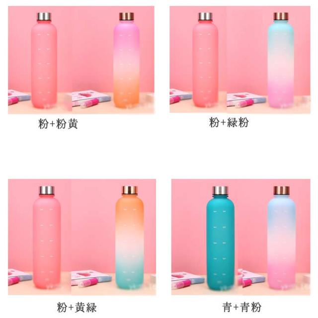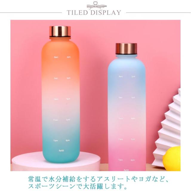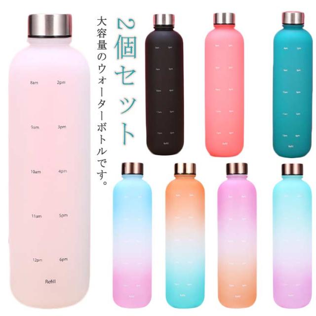 直飲み 1000ml 水筒 2個セット スポーツ ウォーターボトル 1リットル 大容量 タイムマーカー付き スポーツ かわいい おしゃれ グラデーション ジム 旅行 アウトドア 漏れ防止 部活 通学通勤