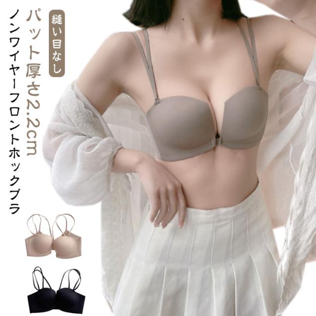 盛り 盛り ブラ ノンワイヤー パット厚さ2.2cm 単品ブラジャー フロントホック 小胸 脇肉 谷間 盛れるブラ 黒 ノンワイヤー ブラジャー ひびきにくい 響きにくい 脇高 ノンワイヤーフロントホックブラ ブラック 肌色