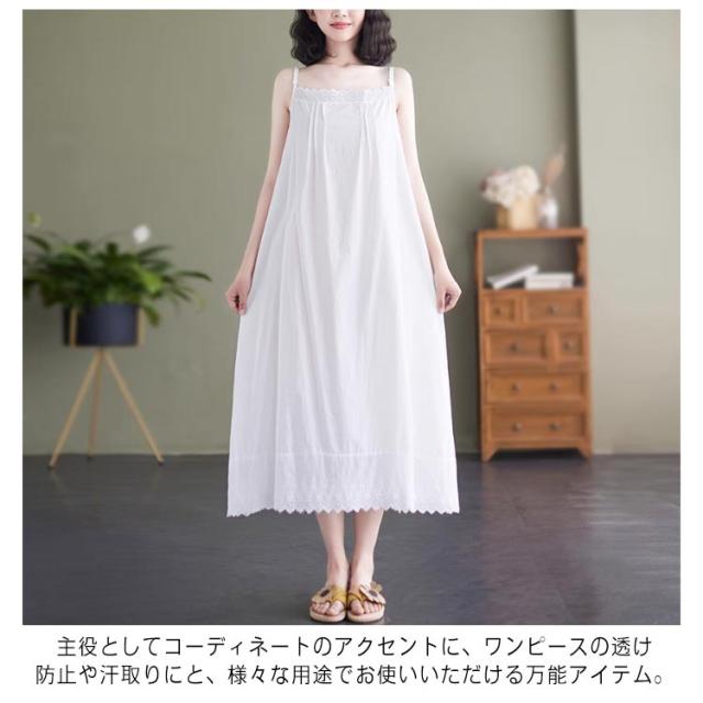 | 裾がレース素材のインナーワンピース。 薄手のワンピースの下に着ると下着が透けません。 ワンピースの裾からちらりと覗かせて、さりげなくフェミニンな要素をプラスするのがおすすめです。 カットソーとの相性抜群。シンプルなトップスと合わせて、オシャレなカジュアルスタイルを楽しめる。 ナチュラルな素材感の綿生地!通気性に優れ、暖かな季節でも快適に過ごせる。柔らかい生地感でお肌にも優しい。 ゆったりとしたシルエットで、自由な動きをサポート。リラックスタイムにも最適! 体のラインが出ないから気になる体型カバーにもピッタリ♪ | |