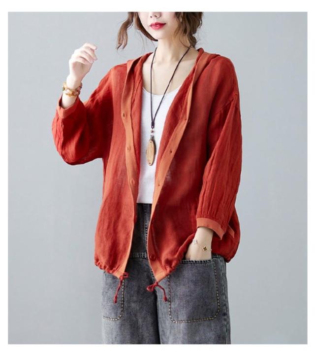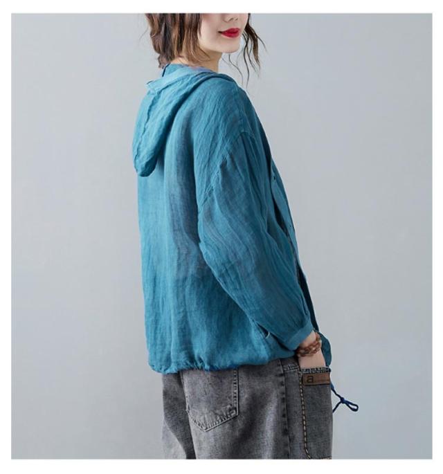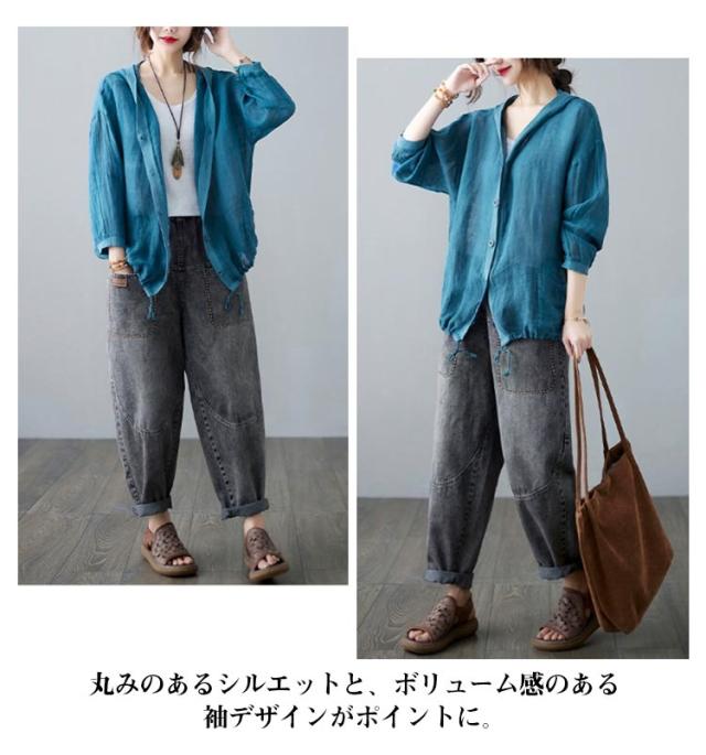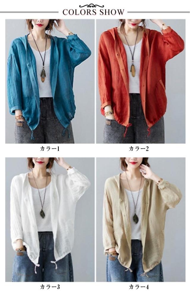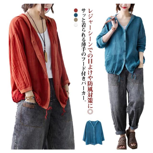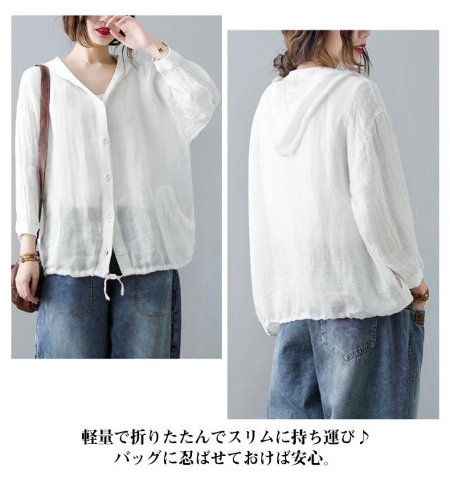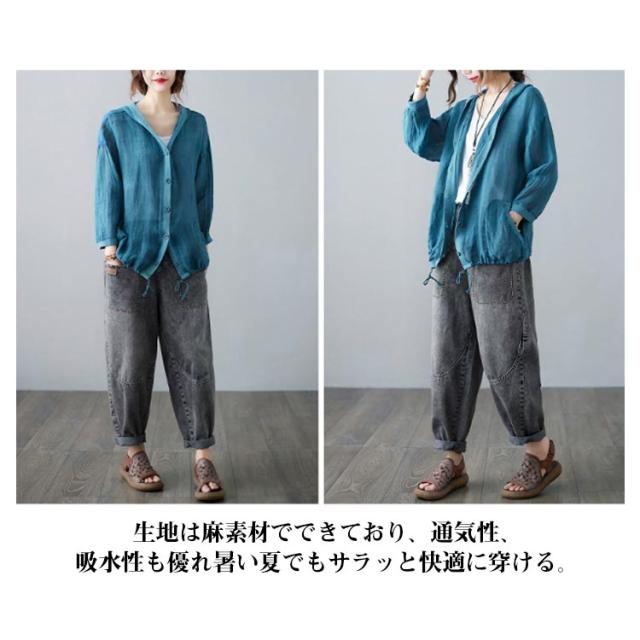 長袖 リネン 送料無料 ライトアウター パーカー 紫外線対策 カーディガン 春夏 サマーカーディガン UVカット 薄手 冷房対策 綿麻パーカー 送料無料 トップス 羽織 大きいサイズ フード付き 無地