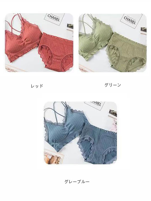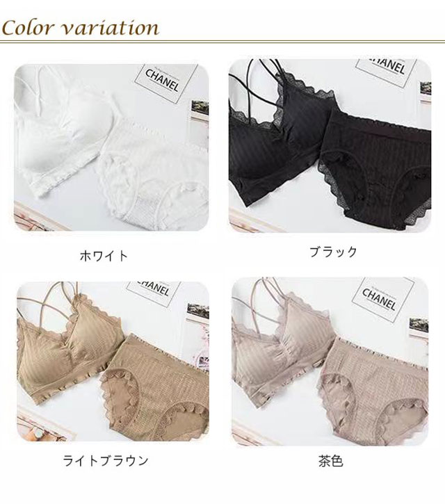 | 着用感ゼロ! 痛くないノンワイヤーブラジャー&ショーツ上下セット。 伸縮性のあるノンストレスな着心地。 シンプルでおしゃれな人気のデザインがポイント。 使いやすくて安い定番カラーをご用意。 | |