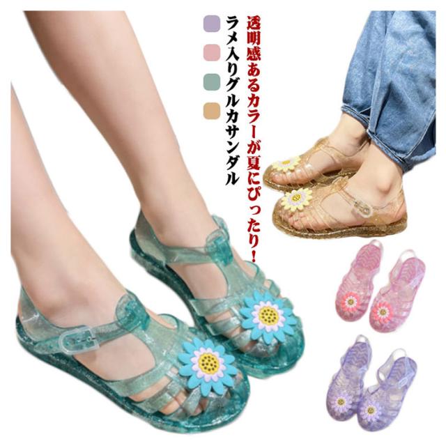 | ・透明感あるカラーが夏にぴったり!ラメ入りグルカサンダル ・涼し気な半透明のクリアサンダル ・ラメがキラキラお姫様気分♪ ・大きめハートがアクセント♪ ・柔らかな素材でできたサンダルは、動きが大きな子ども達にも嬉しいソフトな履き心地です。 ・ラメ入りPVC素材で水を弾くので海や川へのお出かけにも最適です♪ | |