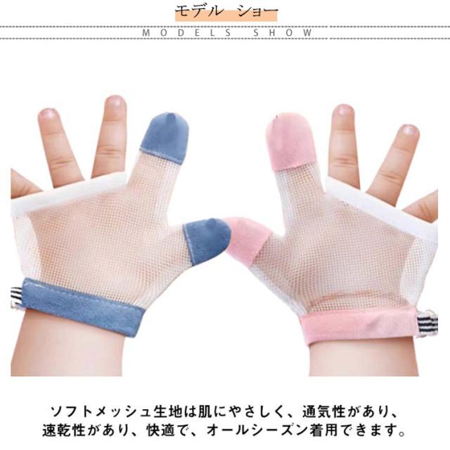 指しゃぶり対策 子供 手袋 矯正器 防止 2個セット 悪習癖 指しゃぶり おしゃぶりガード てぶくろ 防止グッズ 爪噛み防止 癖 補正 歯がため 赤ちゃん ベビー 幼児 子ども ソフトメッシュ 調節可能 2個セット 通気性が良い