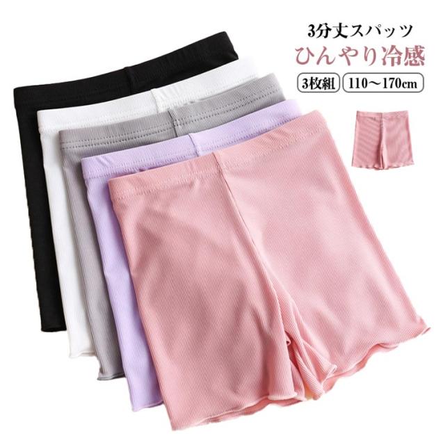 【3枚セット】キッズ 子供 インナーパンツ 女の子 接触冷感 ペチパンツ レギンス スパッツ オーバーパンツ パンツ 3分丈スパッツ 保育園 幼稚園 小学生 アンダーウェア 深履き ストレッチ 無地 ペチコート ショートレギンス