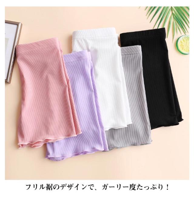 | 【3枚組】【ひんやり冷感】【3分丈スパッツ】【110〜170cm】 伸縮性に優れてとても動きやすい接触冷感素材です。 かさばらない薄手の生地でズボンにも、スカートの下にもばっちりの着心地です。 フリル裾のデザインで、ガーリー度たっぷり! 窮屈さやムレはなく、とっても快適な履き心地〜 柔らかくて通気性があり、締め付け感もなく、着心地抜群! | |