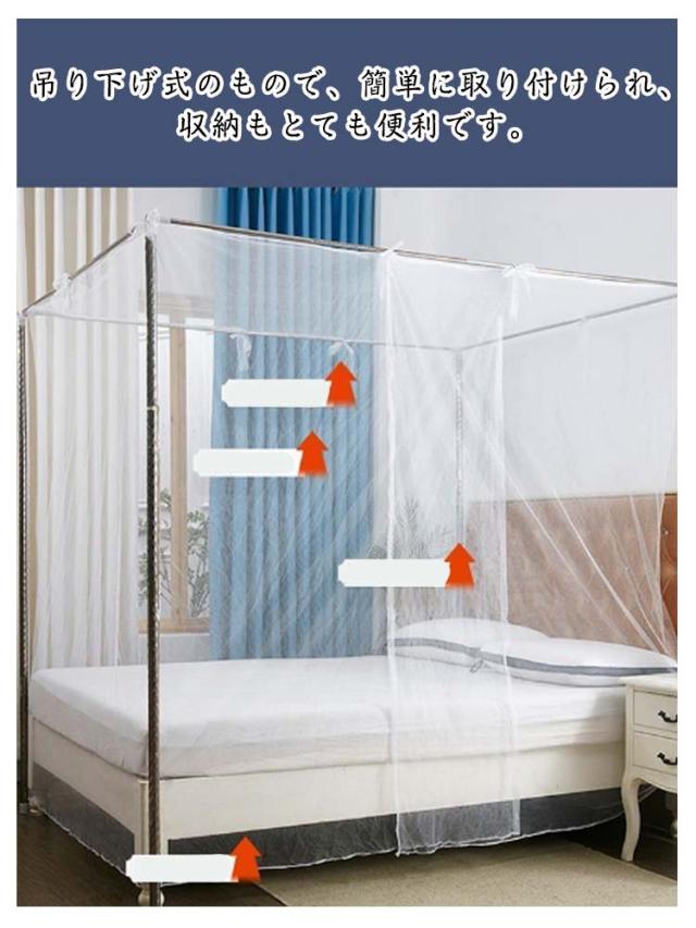 | 殺虫剤を使用せず、屋内でも屋外でも使用できる大判蚊帳です。 吊り下げ式のもので、簡単に取り付けられ、収納もとても便利です。 細やかな目のネットは、360°方向から蚊やハエなどの虫をガードできます。 殺虫剤や蚊取り線香を使わず、お子様がいるご家庭で重宝されています。 クーラーなど冷気を和らげる効果もあり、冷えすぎ防止にも。 洗濯機で洗えるので、次の夏もずっと使うことができますので、とってもエコで経済的です。 キャンプ、旅行、ハイキング、天体観測など様々なアウトドア活動に最適! | |