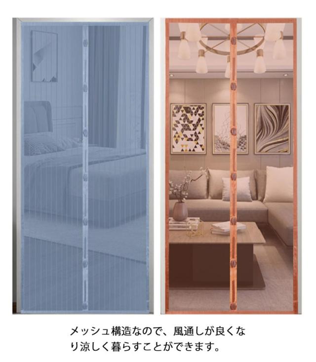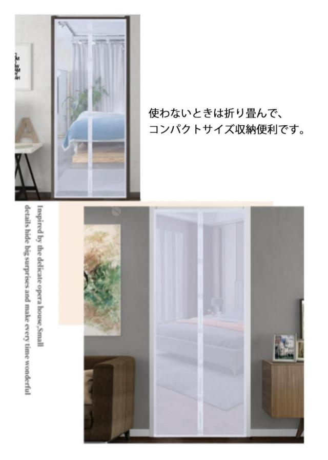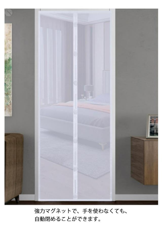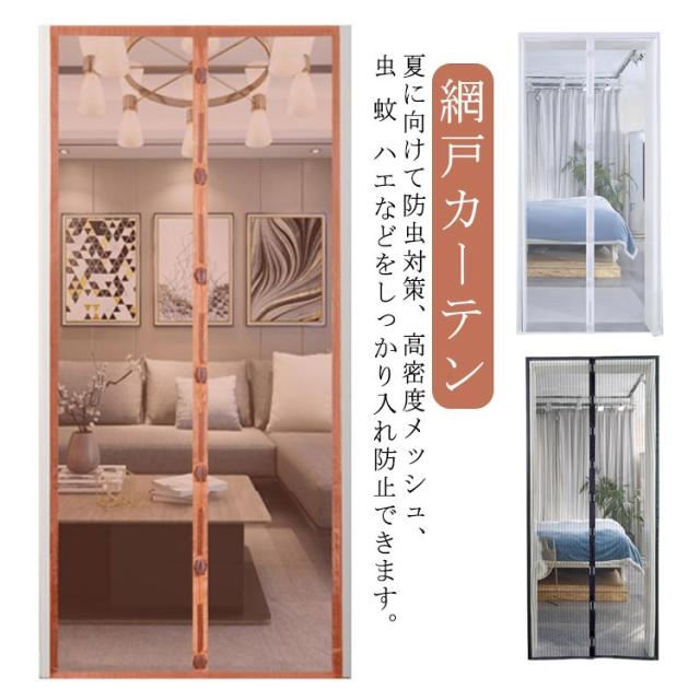 | 網戸カーテン。夏に向けて防虫対策、高密度メッシュ、虫 蚊 ハエなどをしっかり入れ防止できます。 玄関カーテンは蚊、ハエ、虫などが気になる季節の必要品です。 メッシュ構造なので、風通しが良くなり涼しく暮らすことができます。 強力マグネットで、手を使わなくても、自動閉めることができます。 使わないときは折り畳んで、コンパクトサイズ収納便利です。 | |