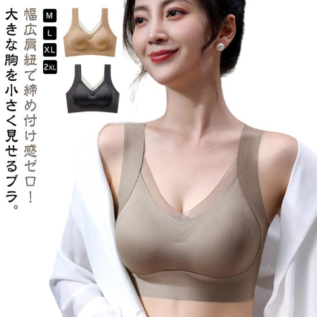 大きいサイズ 取り外し可能パット コンパクト はみ肉 スリムシルエット 胸を小さく見せるブラ Tシャツブラ ナイトブラ 脇高 ハーフトップ スマート 胸を小さく見せるブラ ブラジャー 無地 響かない シームレス ノンワイヤー リフトアップ ホールド