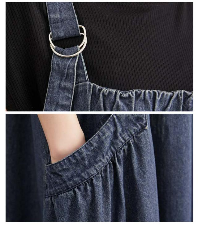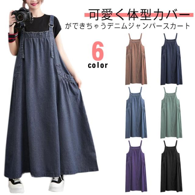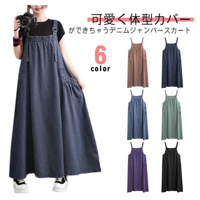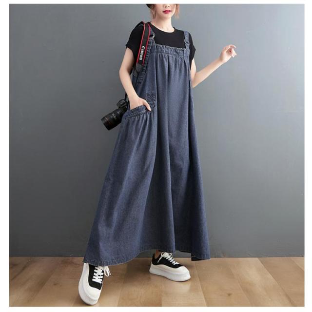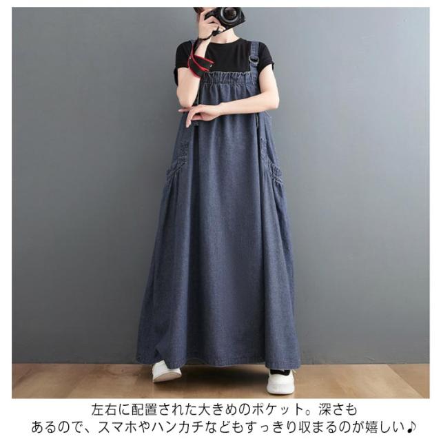 ジャンパースカート ワンピース 体型カバー ジャンスカー デニムワンピース ゆったり オールインワン ロング丈 デニム サロペット マキシワンピース Aライン 大きいサイズ シンプル カジュアル 送料無料 夏 春