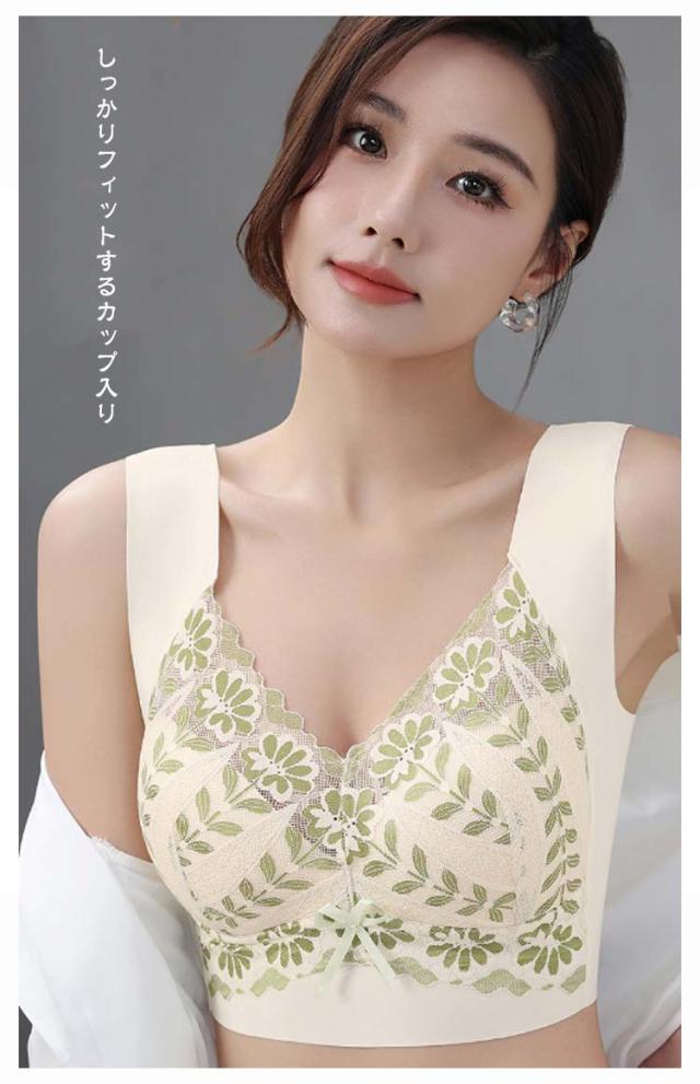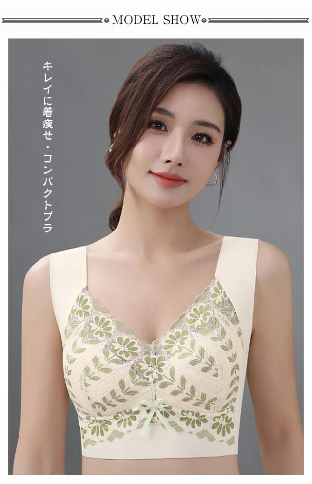 胸を小さく見せるブラ 着やせ レース ブラジャー レース ノンワイヤー コンパクト ハーフトップ 脇高 はみ肉 ブラジャー 大きいサイズ シームレス 無縫製 シームレス スッキリ ワイヤレス 小さく見せるブラジャー ナイトブラ 大きな胸を小さく見せる ブラ