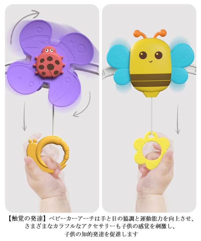 室内 ベッドメリー 知育玩具 ベッドメリー ガラガラ ハイローチェア 寝かしつけ ベビーおもちゃ アーチ型 ベビーカーおもちゃ ベビーベッド ベビーカー用振り子 取り付け簡単 多機能 チャイルドシート 屋外 赤ちゃん遊び お誕生日 出産祝い