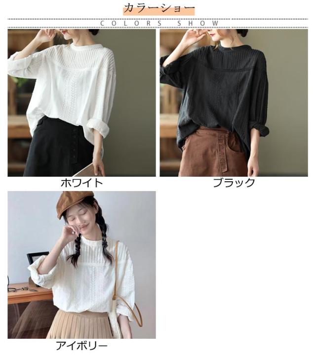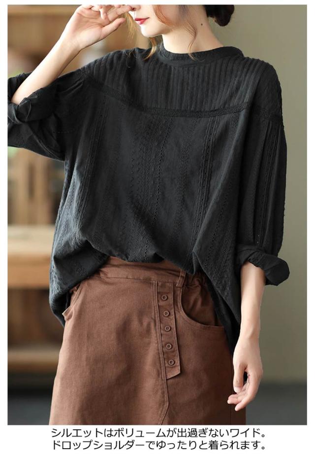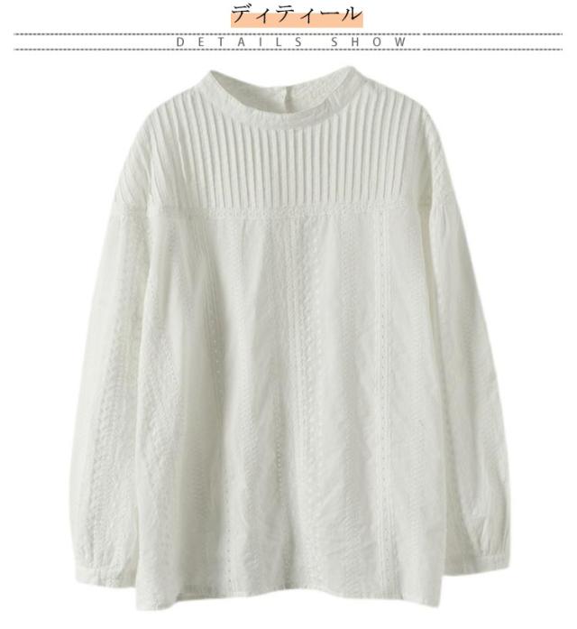 レース ブラウス 刺繍 花 トップス 長袖 フラワー 刺繍 通勤 チュニック 刺繍 レディース パフスリーブ ブラウス コットン 綿 ふんわり シャツ 柔らか 上品 オフィス スタンドカラー 可愛い きれいめ 1枚で決まる 20代 30代 40代 50代 60代