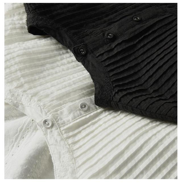 | フロントにレース刺繍を施した、少し詰まり気味のネックがクラシカルなブラウス。 レース刺繍が華やかで、大人が着やすいよう甘くなりすぎないレースに仕上げました。 シルエットはボリュームが出過ぎないワイド。ドロップショルダーでゆったりと着られます。 長さがあり、気になるヒップラインを隠してくれるのも嬉しいポイントです。 目の詰まった、さらりと上質なコットンなので、おでかけも天然素材のお洋服で装いたい、という方におすすめです。 きちんと感はあるけれど、ゆったりとして気取らないおしゃれが楽しめる、オケージョンシーンにぴったりの1枚です。 | |