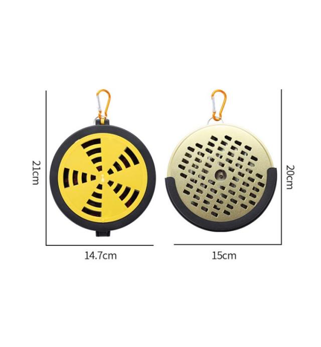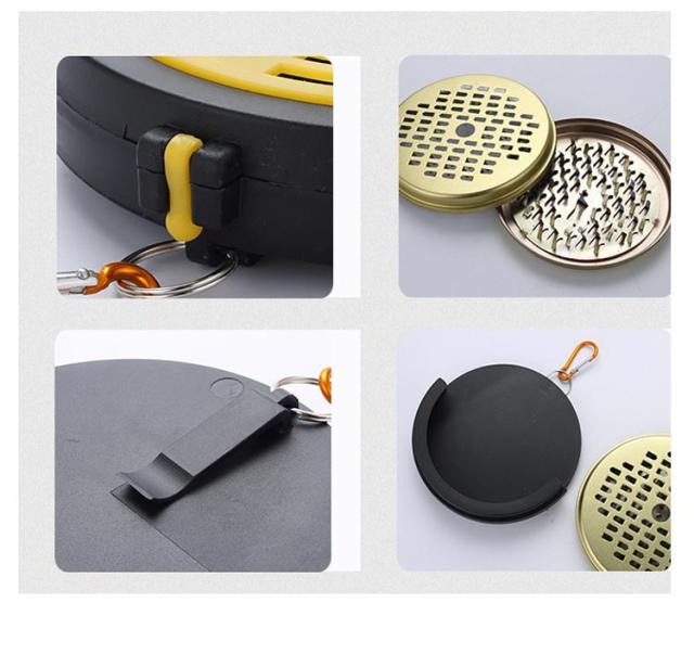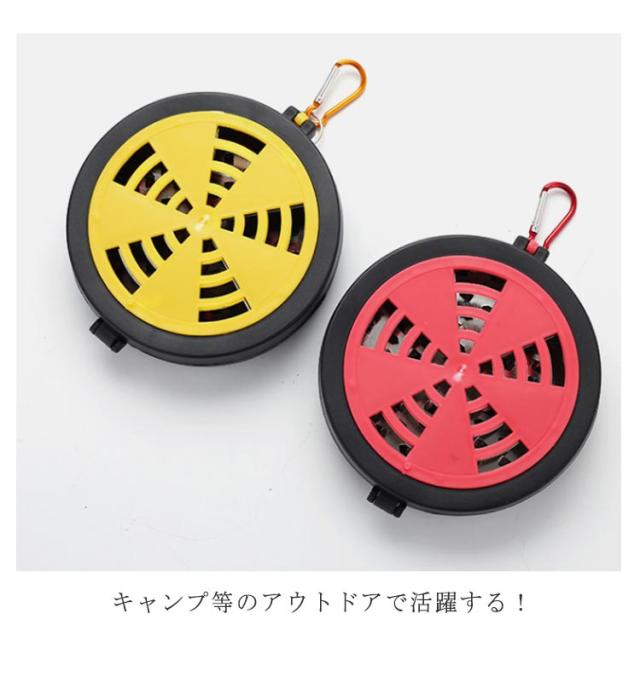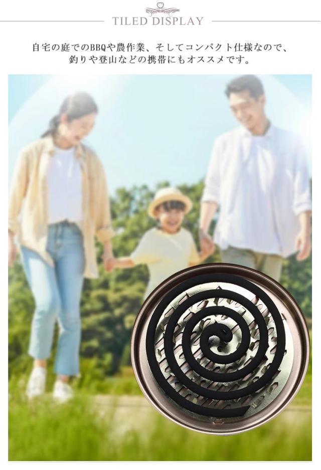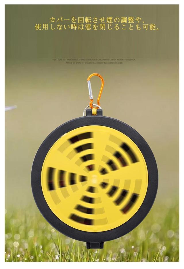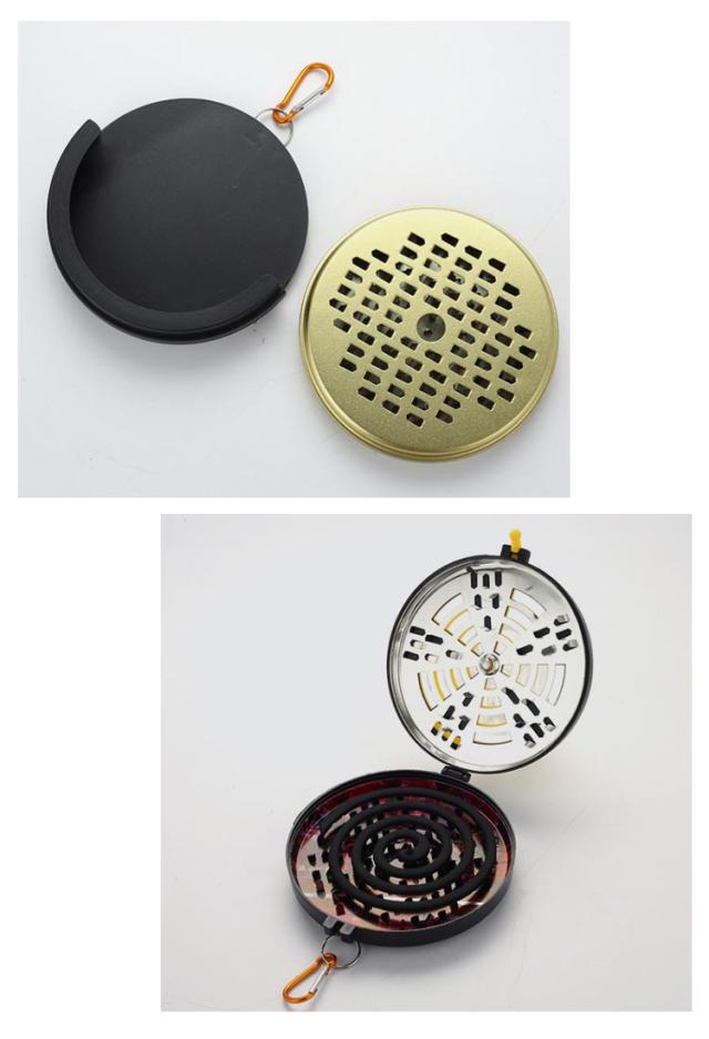 | 火傷防止、カナビラ付きポータブル蚊遣りです。 キャンプ等のアウトドアで活躍する! 自宅の庭でのBBQや農作業、そしてコンパクト仕様なので、釣りや登山などの携帯にもオススメです。 カバーを回転させ煙の調整や、使用しない時は窓を閉じることも可能。 | |