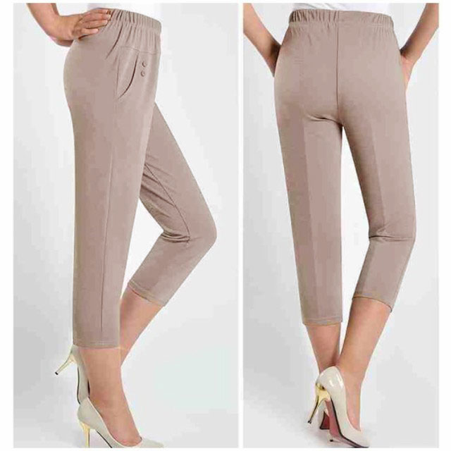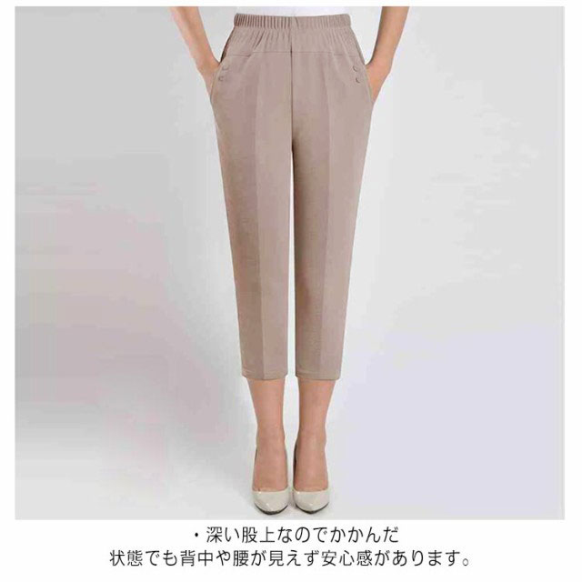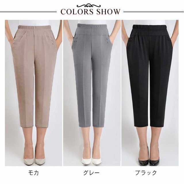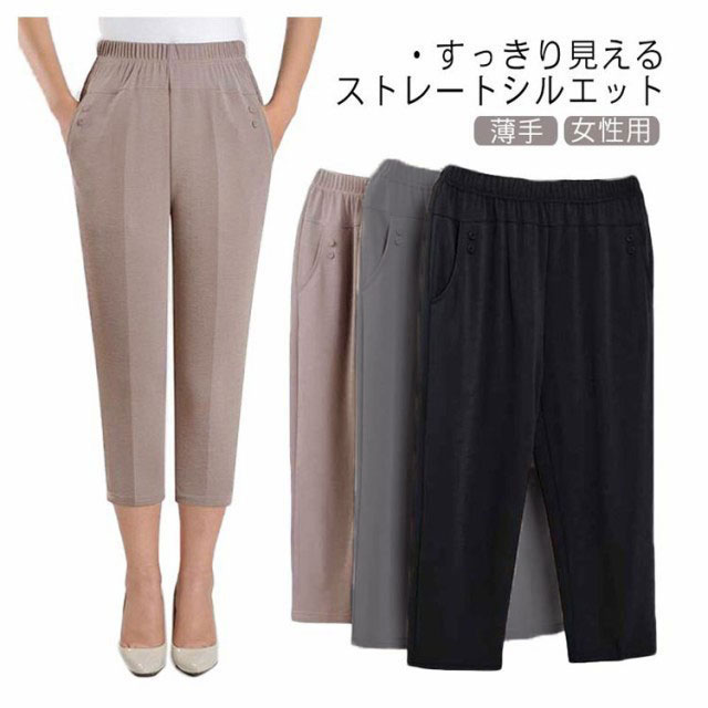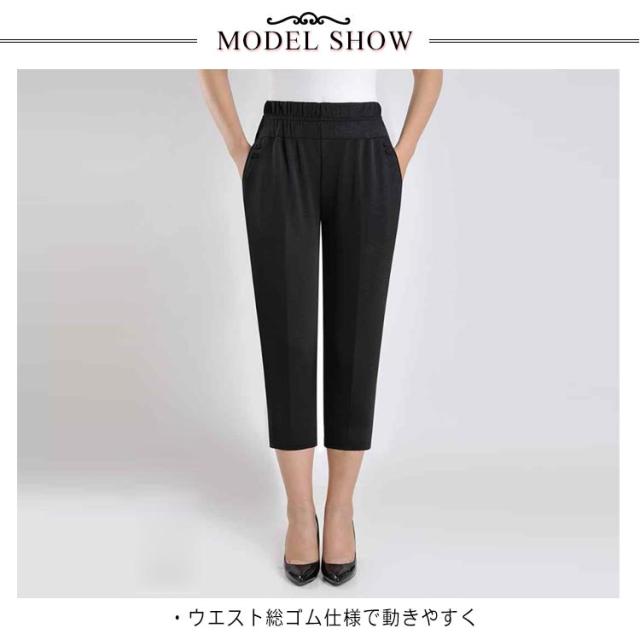 シニア パンツ 大きいサイズ レディース 7分丈 ズボン ウェストゴム ポケットあり ストレッチ 薄手 夏 女性用 婦人 おばあちゃん 母 60代 70代 80代 90代 プレゼント