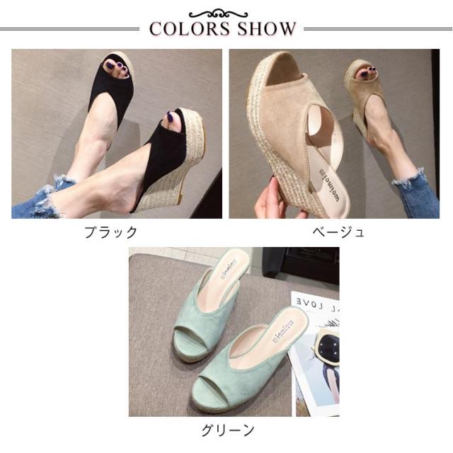 サンダル レディース サボサンダル ウェッジソール 厚底 つっかけ ミュール サボ 9cmヒール ジュート ソール Vカット 夏 履きやすい 歩きやすい 痛くない ヒール リゾート 旅行 浴衣