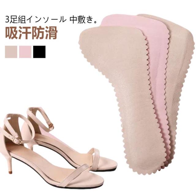 インソール 中敷き サンダル レディース 春夏 粘着 汗吸収 防臭 ハイヒール 3足組 吸汗防滑 靴ずれ防止 滑り止め パッド 中敷 つま先 減震クッション 低反発 衝撃 吸収 疲れない ソフト クッション パンプス用 送料無料