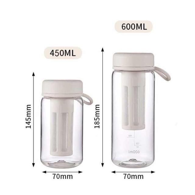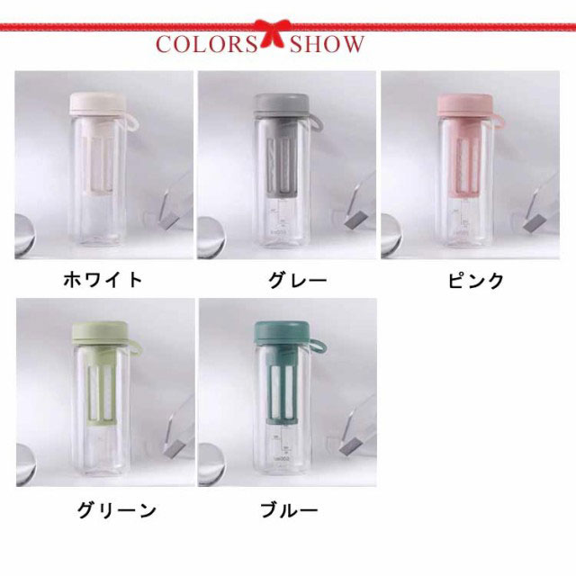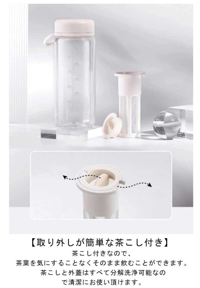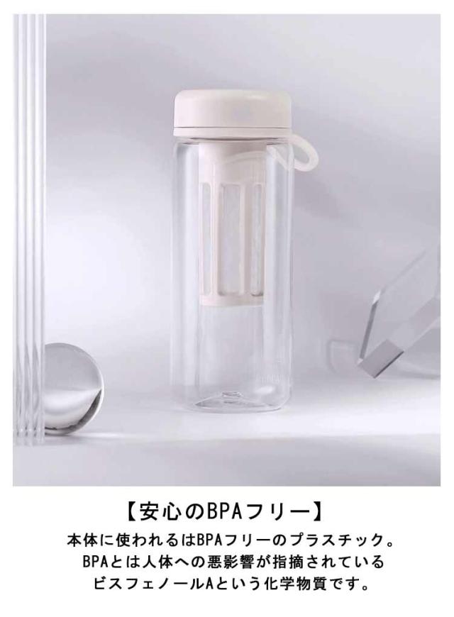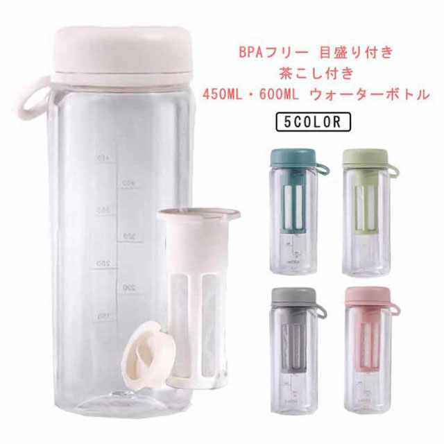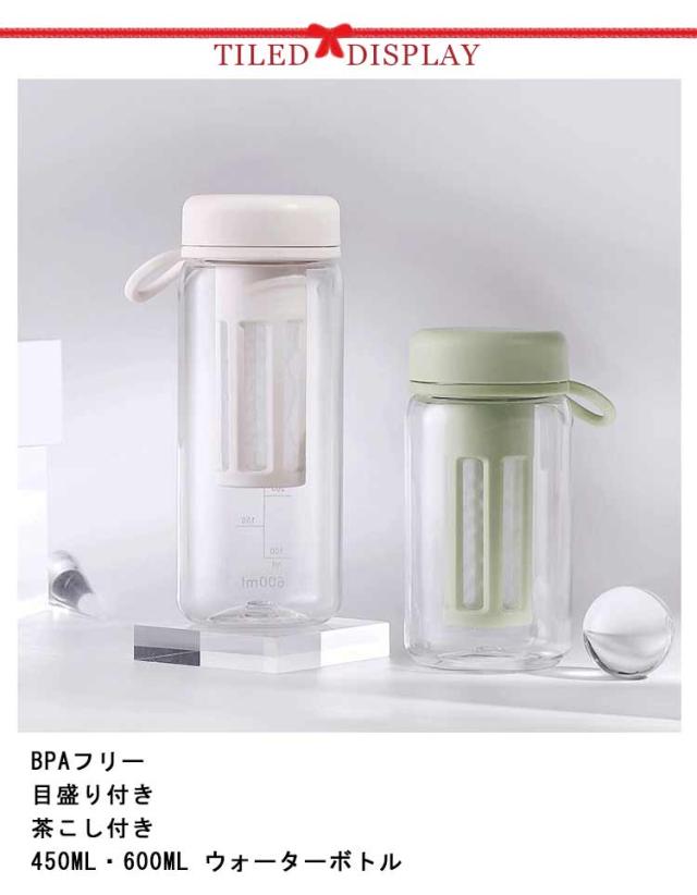 | BPAフリー 目盛り付き 茶こし付き 450ml・600ml ウォーターボトル 【安心のBPAフリー】 本体に使われるはBPAフリーのプラスチック。BPAとは人体への悪影響が指摘されているビスフェノールAという化学物質です。 【目盛りつきのボトル】 サイドに目盛りが付いているので、毎日の水分摂取の量の目安がわかります。 【取り外しが簡単な茶こし付き】 茶こし付きなので、茶葉を気にすることなくそのまま飲むことができます。茶こしと外蓋はすべて分解洗浄可能なので清潔にお使い頂けます。 【持ち運び便利】 ハンドストラップ付きを付属し、持ち運びにも便利です。 【様々なシーンで大活躍!】 通勤通学や、ヨガやジムなど、スポーツシーンで大活躍のボトルです。 | |