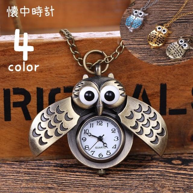 懐中時計 ポケットウォッチ 時計 ネックレスウォッチ チェーン メンズ レディース 男女兼用 アンティーク調 フクロウ 梟 レト