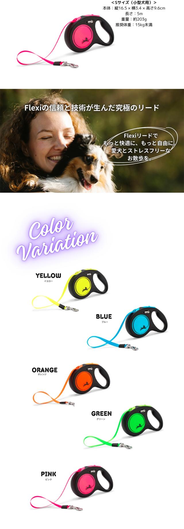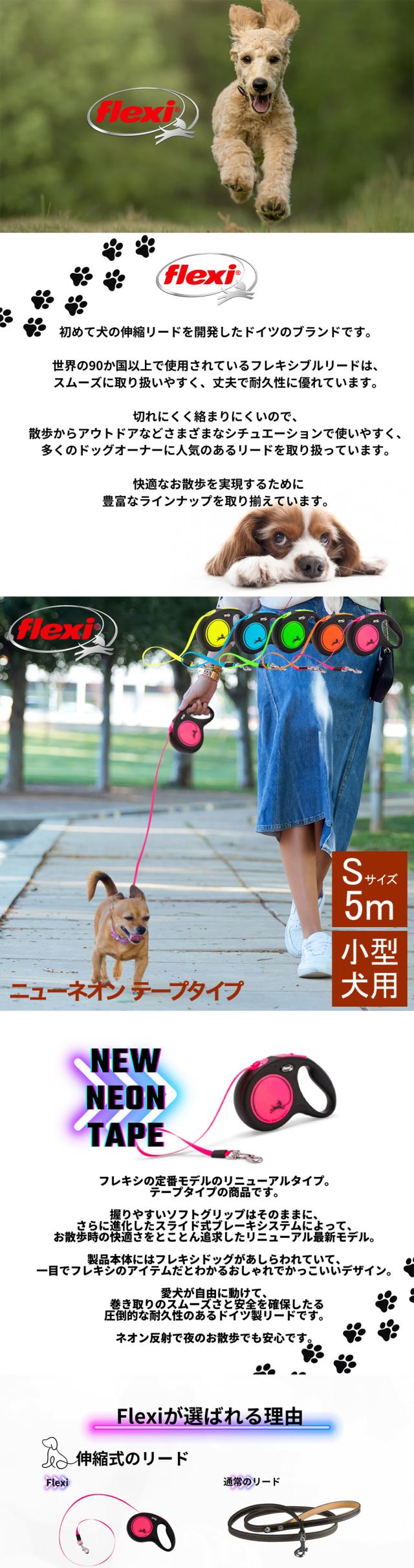 [あす着] フレキシ Flexi リード 小型犬 伸縮リード 犬用 ニューネオン テープタイプ Sサイズ 小型犬用 CL11T5