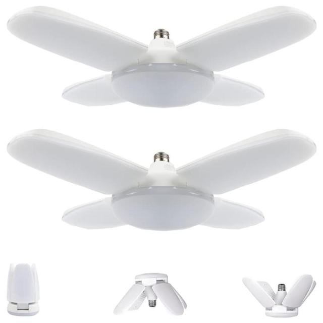 ペンダントライト ガレージライト E26 ベース 照明器具5灯式 LEDシーリングライト昼白色 6500K 高輝度 60W 折りたたみ式 小型 工事不要 角度調節可能 省エネ 天井照明(2個)