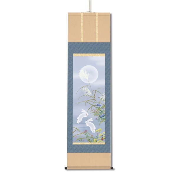 ( ウサギと月の掛け軸 ) 縁起の良いお月様掛軸 田村竹世 掛軸「月見兎」 尺五桐箱入り |b04