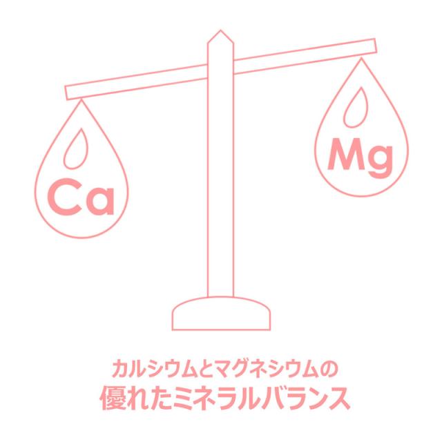 天然のカルシウムとマグネシウムのバランスに優れ、適度なミネラル含有量で、飲みやすくおいしい硬水です。