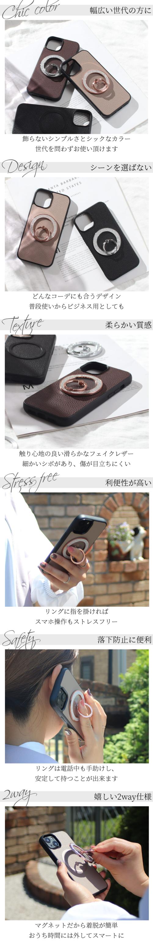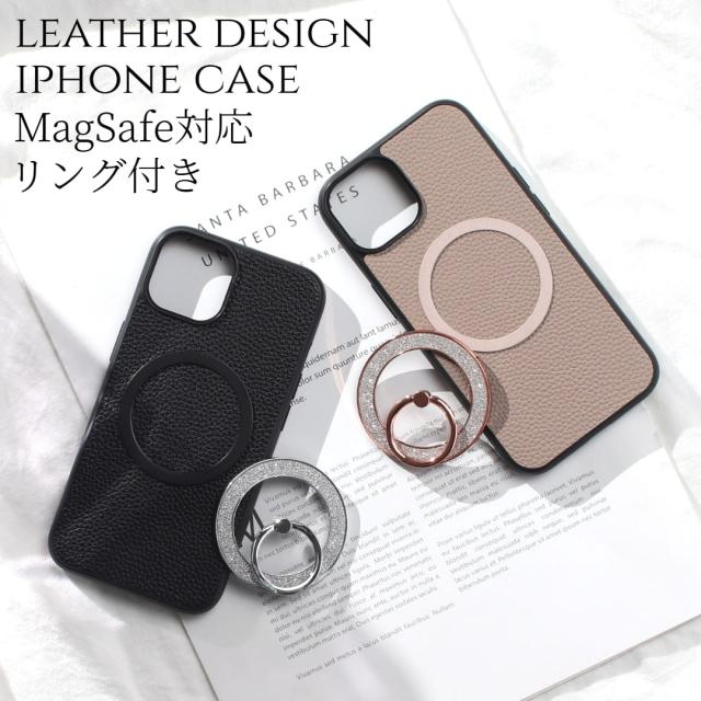 iphone ケース リング付き iphone17 iphone16 iphone15 iphone14 iphone13 pro SE マグセーフ対応 magsafe レザー マグネット 大人かわいい スリム 軽量 アイフォン 17pro 16pro 15pro 13mini スマホリング スタンド 17 16 15 14 13 12 se3 おしゃれ レディース 送料無料