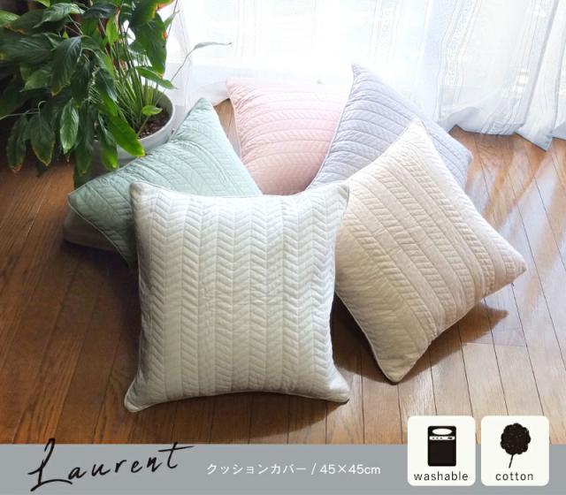 クッションカバー 45×45 北欧 キルト 綿 綿100% コットン 洗える ローラン 45×45cm 無地 キルティング シンプル モダン ※クッションは付いておりません