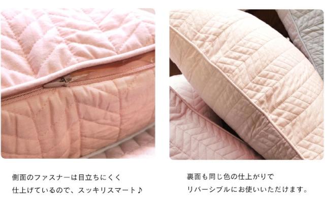 アイボリー ベージュ グレー ピンク グリーン 北欧 リバーシブル クッション カバー キルトカバー カバーリング キルティング 水洗いキルト 洗濯OK 洗える