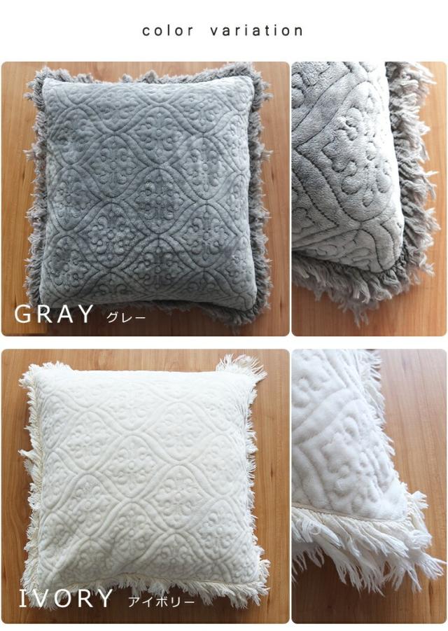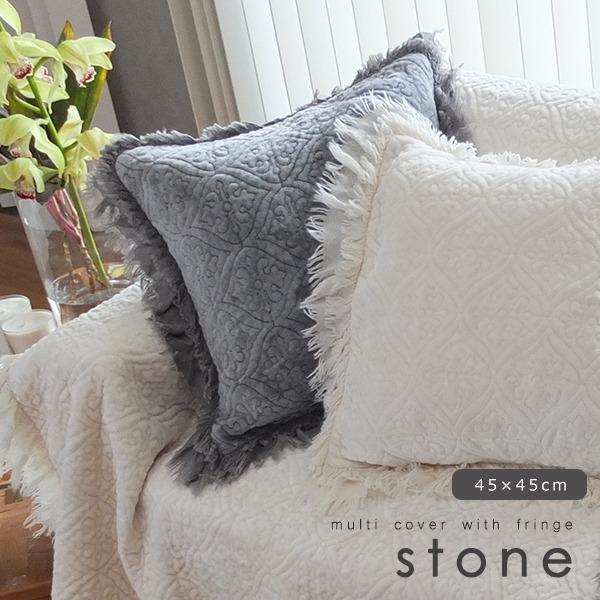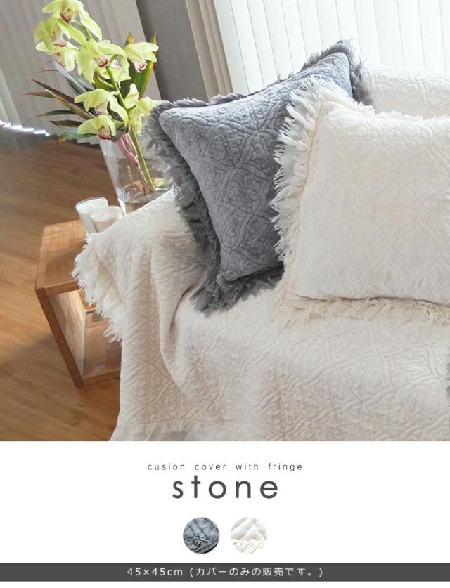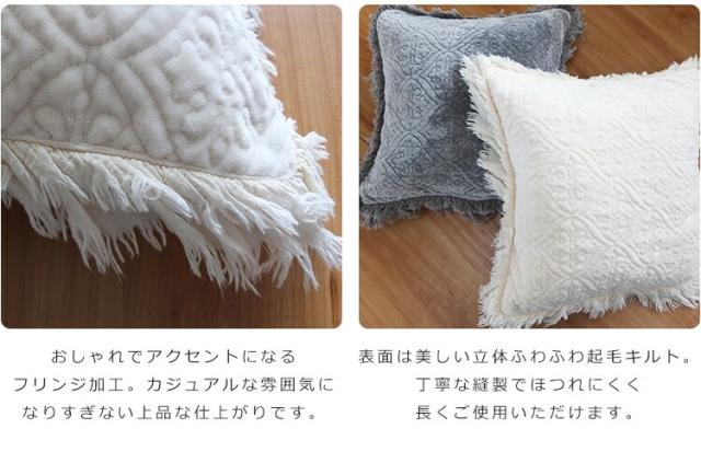 カバーリング カバー おしゃれ フリンジ ストーンウォッシュ 短毛ボア アイボリー グレー キルト キルトカバー おしゃれ キルティング 四角 クッション カバー ストーンウォッシュ カジュアル アンティーク