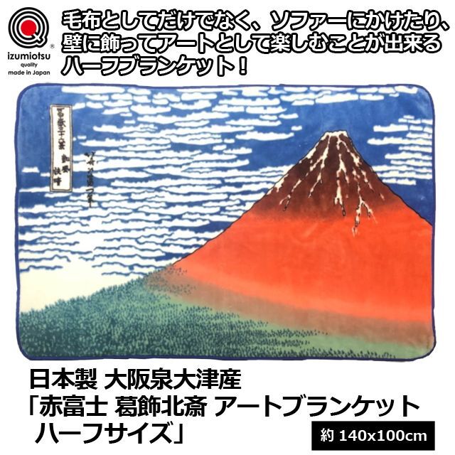 日本製 大阪泉大津産 「赤富士 葛飾北斎 アートブランケット ハーフサイズ」 (140×100cm ハーフ毛布)