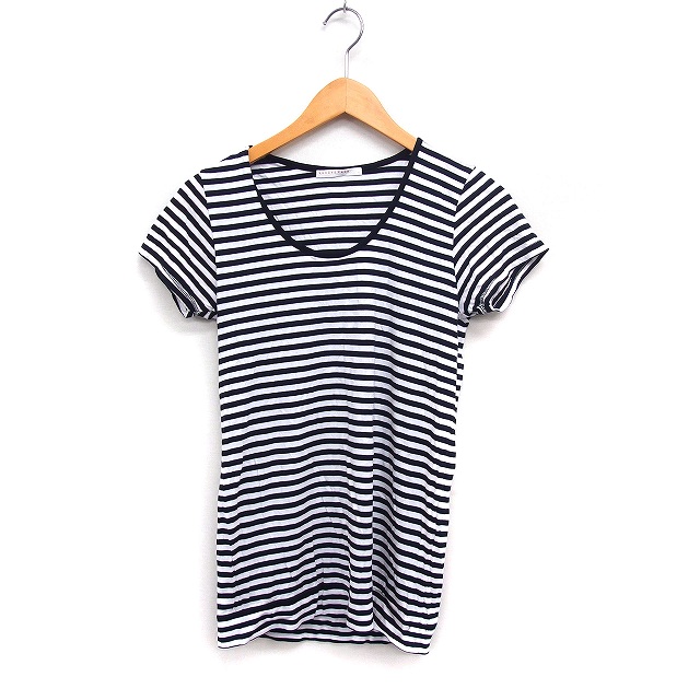 【中古】ローリーズファーム LOWRYS FARM ボーダー カットソー Tシャツ Uネック 半袖 綿混 M ブラック 黒 /FT18