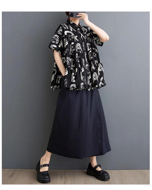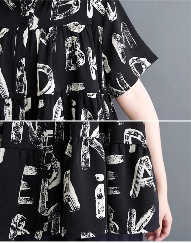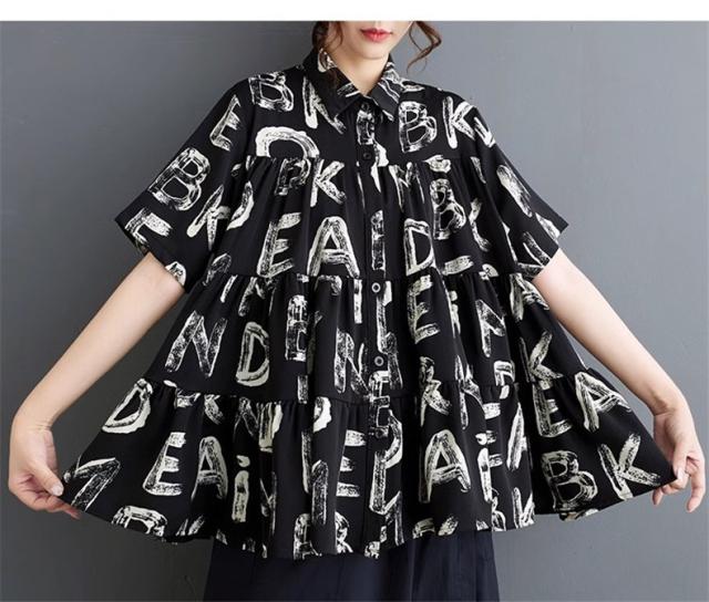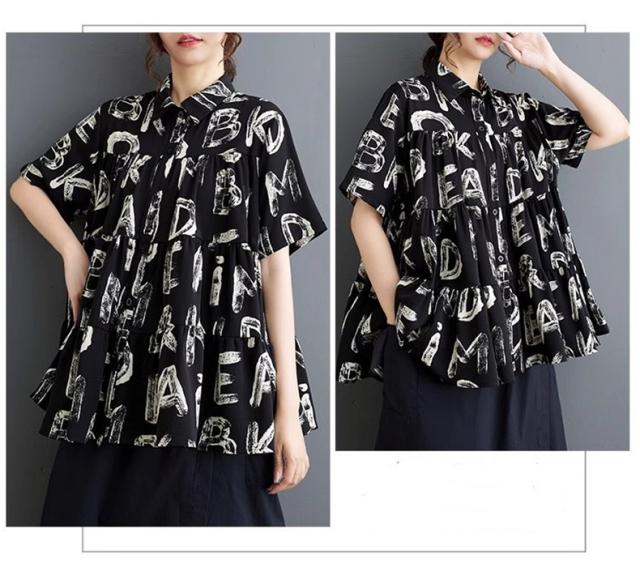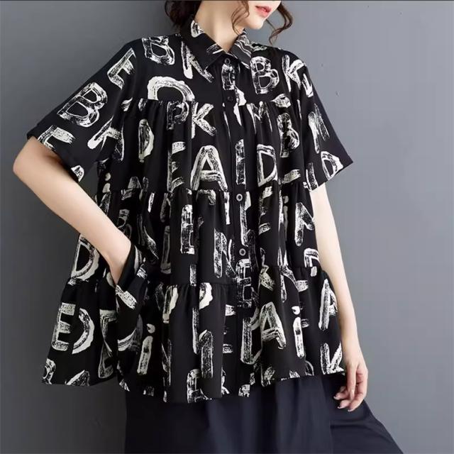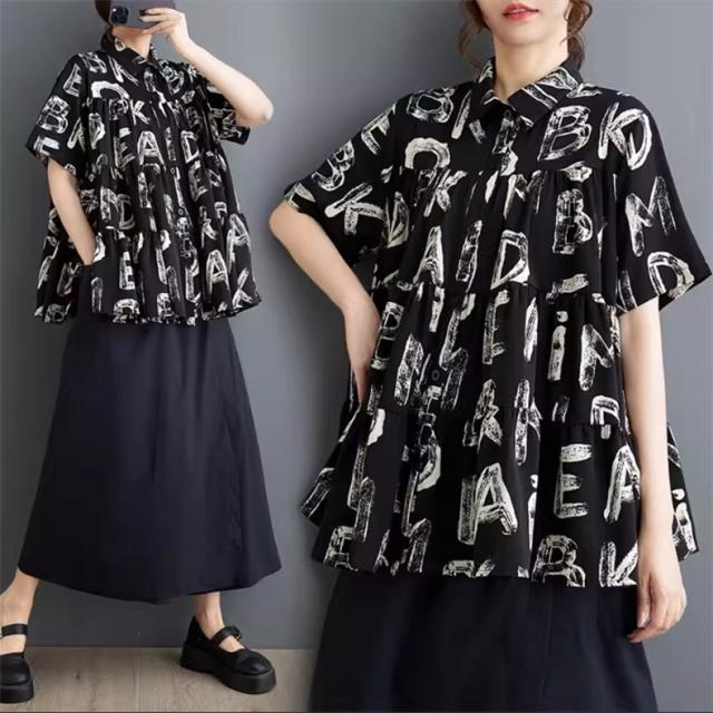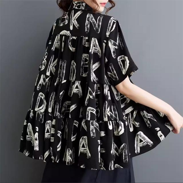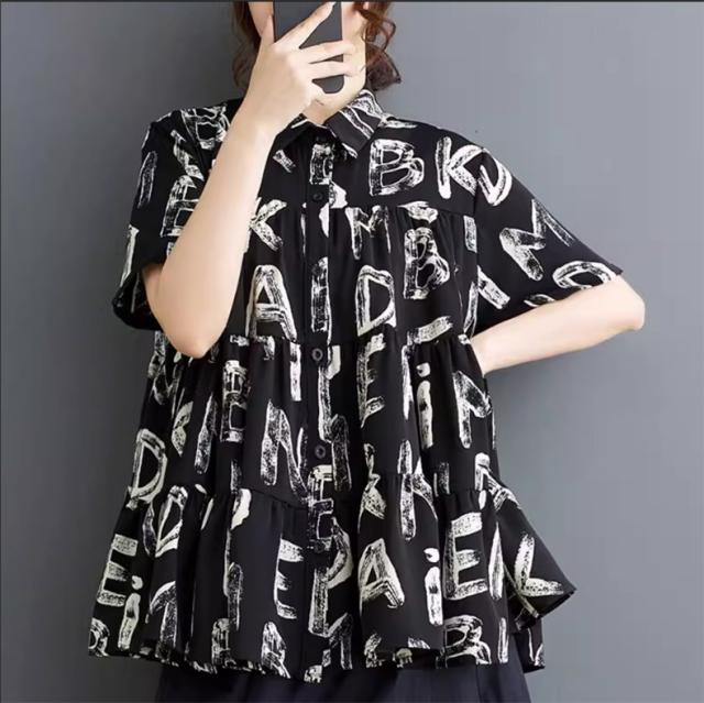 シャツ ブラウス レディース トップス 半袖 字母柄 着心地バッチリ トレンド感たっぷり 幅広いスタイルコーデ映え間違いなし リラックススタイルが叶う