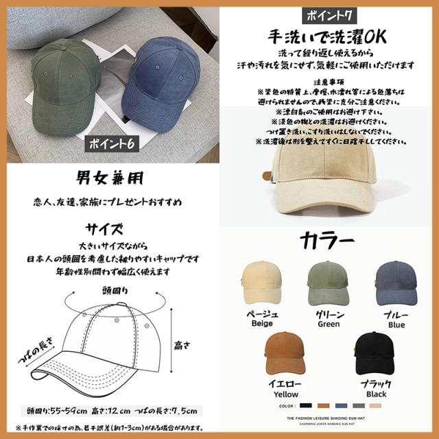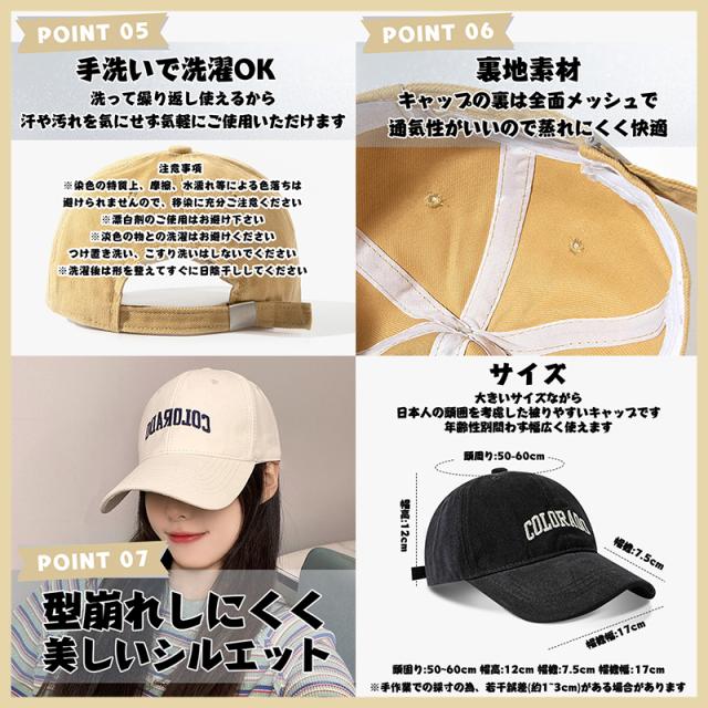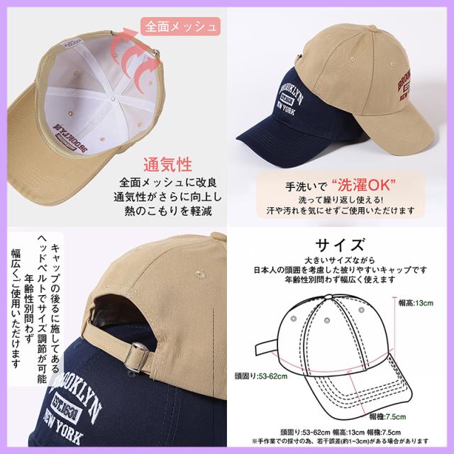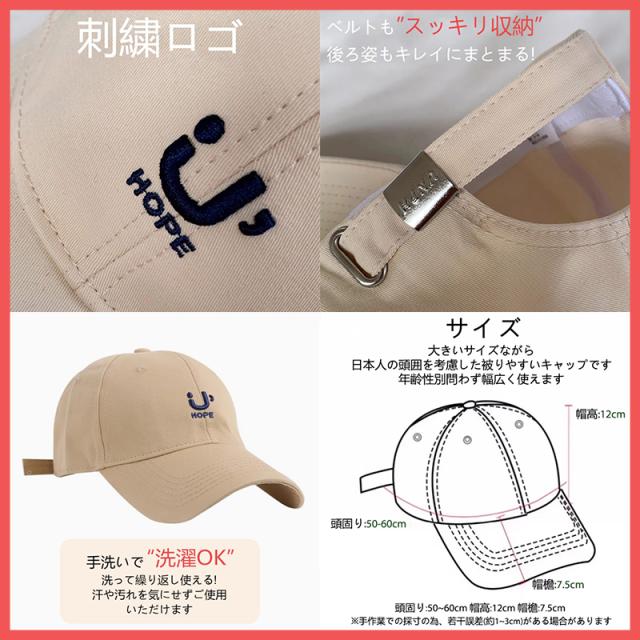 【サイズ調整可能&男女兼用】 頭周り約55−59?、ツバ約7.5?、深さ約12.5?。後部アジャスターでお好みのサイズに調整できます。男性、女性を問わずかぶれます。