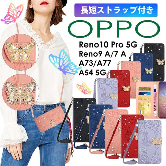 OPPO Reno10 Pro 5G ケース キラキラ 蝶 デコ OPPO Reno7 A ケース 手帳 革 OPPO Reno9 A ケース 手帳型 ショルダー おしゃれ 花柄 OPPO A77 A73 OPPO A54 5G カバー ケース ショルダー オッポ リノ10 pro 9a 7a スマホケース ショルダー タイプ ストラップ 肩掛け 斜め掛け