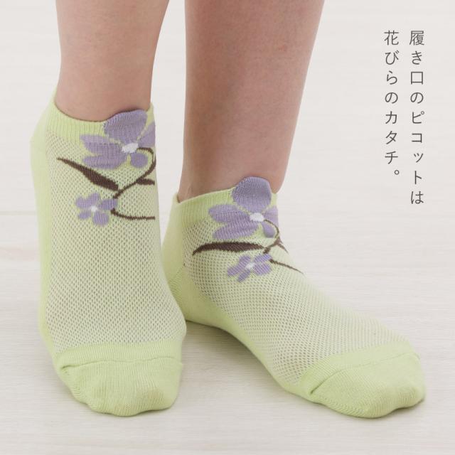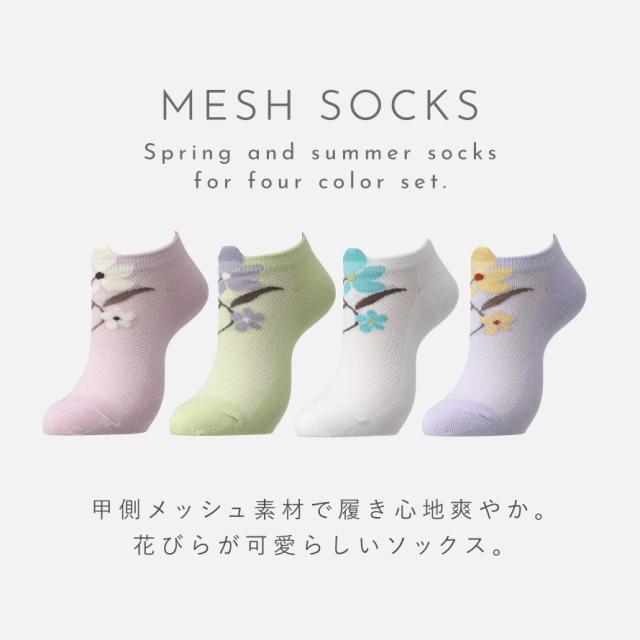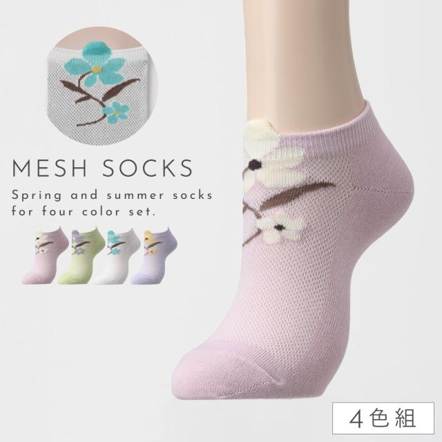 靴下 スニーカー レディース 夏用 涼しい 【4柄組】22-25cm 花柄 花 くるぶし スニーカー丈 薄手 夏 メッシュ 【 快適な履き心地・夏靴下 】 まとめ買い 4足 くるぶしソックス メッシュソックス かかと 補強 丈夫 花柄立体メッシュ編みソックス