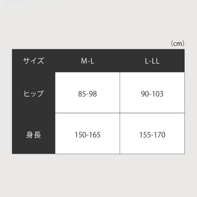 ■サイズ:M-L/身長150-165cm、ヒップ85-98cm、L-LL/身長155-170cm、ヒップ90-103cm