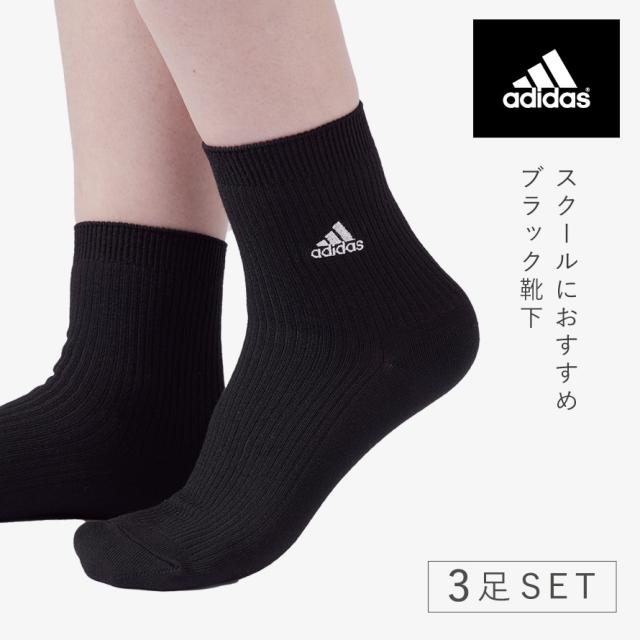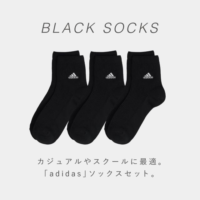 カジュアルにもスクールにもおすすめ。ブラックで使いやすいアディダスソックス3足セット。足首の刺繍ロゴがポイント。スクール用としても大活躍のソックス。
