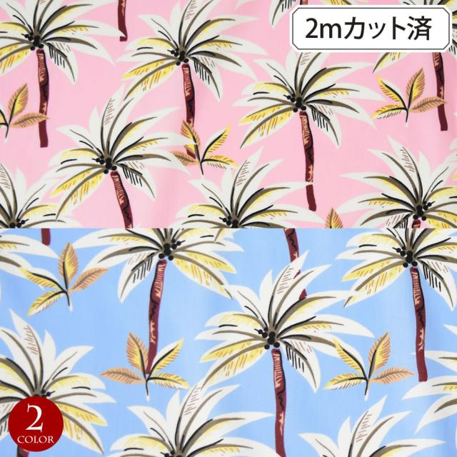 生地 ハワイ柄 ハワイアン柄生地(約113cm巾x2mカット済) L44D20 [M便 1/2] シーチング生地 布 ヤシの木 ハワイ柄生地 柄生地 ハワイアンプリント生地 インテリア生地 パウスカート クッションカバー バッグ 綿混 薄地