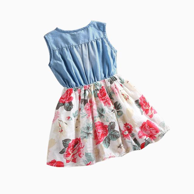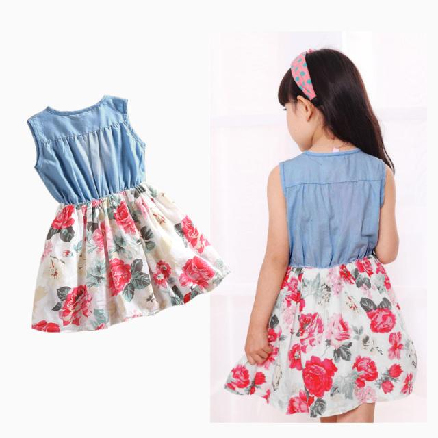 子供ワンピース 夏 子供服 ワンピース 発表会 デニム風 花柄のおしゃれなワンピース キッズ 夏定番ワンピース プレゼント ノースリーブ ワンピース キッズ