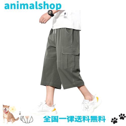 ◆商品名:ODFMCE サルエルパンツ メンズ 夏 ハーフパンツ 7分丈 ゆったり 無地 綿麻 おしゃれ 大きいサイズ (グリーン, L)