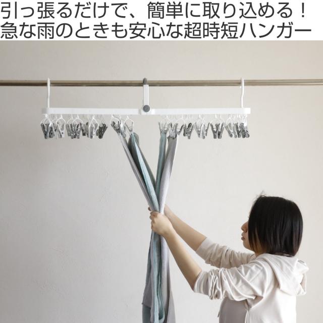 洗濯ハンガー The hangers 52ピンチ 引っ張って取り込めるランドリーハンガー ( 洗濯 ハンガー フック ピンチ 洗濯ばさみ 3点フック 折りたたみ ランドリー 52 物干しハンガー ピンチハンガー 隠し干し 簡単 時短 )