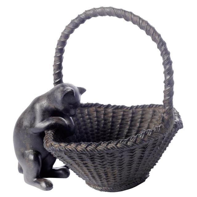 ガーデンオーナメント バスケット 猫 置物 ( ガーデニング オーナメント ディスプレイ 飾り 置く ガーデンマスコット ネコ ねこ 玄関 エントランス 庭 ガーデン 雑貨 インテリア 庭飾り ウェルカムオーナメント )