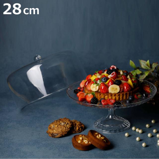 ケーキスタンド&ドーム 28cm 8号 UCA プラスチック ( ケーキスタンド ふた付き カバー付き ケーキ台 1段 軽い 割れにくい ティータイム カフェ 透明感 インテリア 飾る おしゃれ )